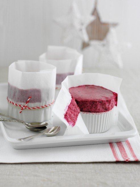 This is a great dessert for a special dinner as it can be made early on in the day and left to set in the fridge. Just peel away the paper before you serve them. If you would like to decorate the soufflés, add a few tiny blackberries and mint leaves to the top or dust lightly with a little sifted icing sugar at the very last minute.